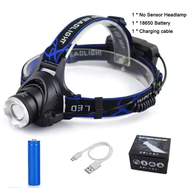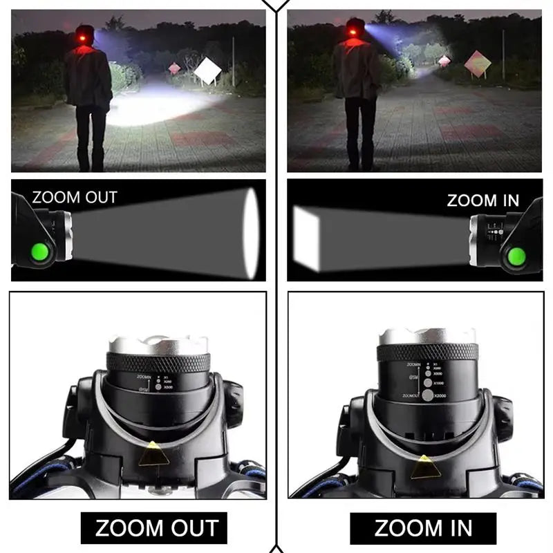 Super Bright Powerful LED Fishing Headlamp 3 Lighting Modes Rechargeable Telescopic Zoom Flashlight Camping Bicycle Torch