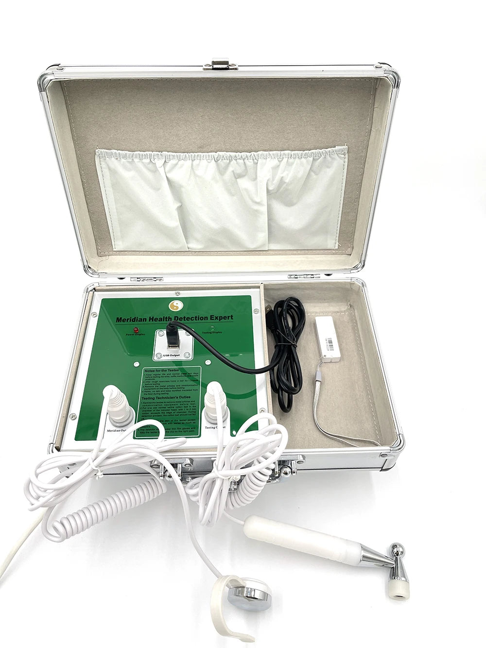 Chinese Medicine Meridian Theory combined with Modern Medical Technology and Computer Technology. The system can create personal track files for the testee to understand the physical changes and the prevention. It also can formulate a comprehensive care treatment, home skin beauty, and health care guidance to replenish physical energy timely and correctly in order to solve all kinds of internal problems. The Meridian Detector can be connected to computers to conduct detailed test analysis and print out the test analysis report and recommendations.