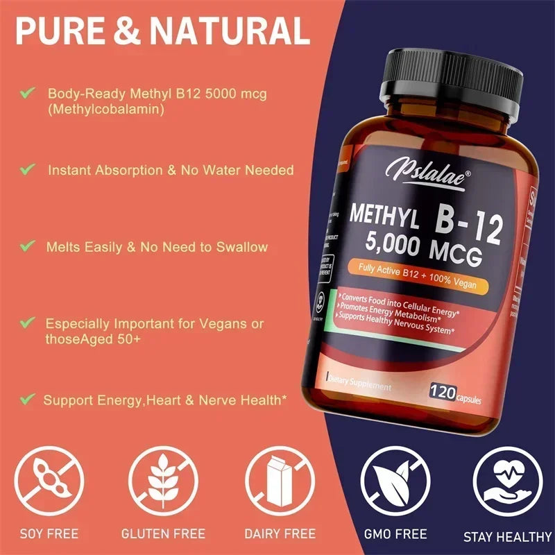 Vitamin B12 5000 Mcg - Supports Energy Levels, Mind, Nervous System - Blood Cell Production, Fatigue Relief, Heart Health