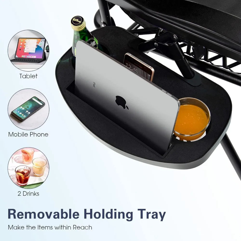 Zero Gravity Lounge Chairs, 160°Adjustable Folding Recliner w/Pillow and Cup Holder, 350LBS Comfy Outdoor Lounge Chairs for Pat